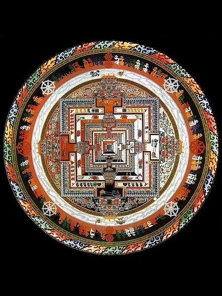 Los mándalas son diagramas o representaciones esquemáticas y simbólicas del macrocosmos y el microcosmos, utilizados en el budismo y el hinduismo. Estructuralmente, el espacio sagrado (el centro del universo y soporte de concentración), es generalmente representado como un círculo inscrito dentro de una forma cuadrangular. En la práctica, losiantra hindúes son lineales, mientras que los mándalas budistas son bastante figurativos. A partir de los ejes cardinales se suelen sectorizar las partes o regiones internas del círculo-mándala.